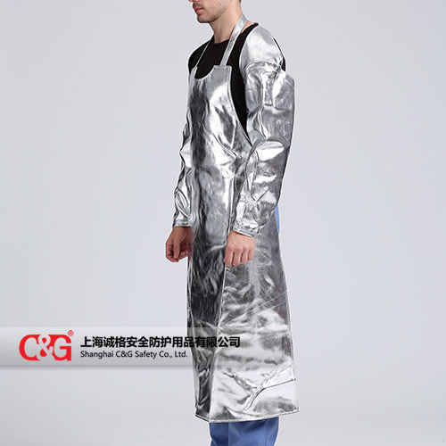 高溫隔熱圍裙采用500g/m2 耐高溫柔軟鍍鋁面料生產,對熱輻射、對流熱、接觸熱及熔融金屬飛濺有較好的防護,廣泛應用于爐前作業(yè),冶金及鑄造等高溫工業(yè)環(huán)境。
