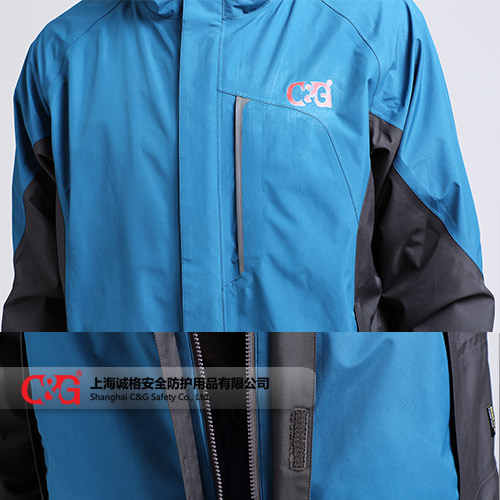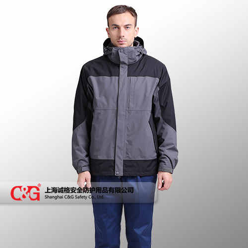 沖鋒衣 CG-CFF804采用符合涂層防水透氣面料制作,防水指數(shù)5000以上,可防中大雨;接縫全部采用壓膠防水拉鏈;內(nèi)膽采用高效保暖羽絨棉,可單獨(dú)穿著;風(fēng)帽可拆卸。