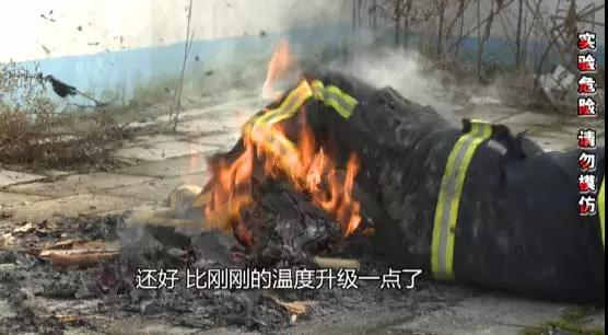 合格的消防服是有阻燃效果的,阻燃到什么程度?在什么情況下會被引燃呢?我們用一件現(xiàn)役消防員穿的、國家強制認證過的合格消防服,來做一次暴力測試。