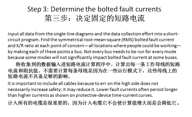 弧閃危害分析應(yīng)該是短路電流計(jì)算和繼電保護(hù)協(xié)調(diào)的一項(xiàng)后續(xù)工作。使用短路電流計(jì)算的結(jié)果可以決定短路電流的瞬時(shí)值,設(shè)備額定遮斷能力和短路酎受電流值。 通過繼電保護(hù)協(xié)調(diào)的結(jié)果可以得出切斷過負(fù)載電流和短路電流的時(shí)間。短路電流計(jì) 算和繼電保護(hù)協(xié)調(diào)為進(jìn)弧閃危害分析提供了必要的數(shù)據(jù)。通過弧閃危害分析,可以得出弧閃保護(hù)的安全邊界長(zhǎng)度和在操作距離上的電弧能墩。