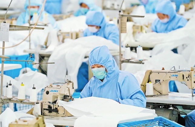 山東如意集團(tuán)1月31日派出紡織技術(shù)骨干,支援健達(dá)醫(yī)療器械公司的防護(hù)服生產(chǎn)。位于蘇州常熟的波司登公司以生產(chǎn)羽絨服聞名,這次僅用兩天時(shí)間,將原本分散在各區(qū)域的 35 臺(tái)設(shè)備集中到一個(gè)車(chē)間,并向政府提交復(fù)工申請(qǐng)。2 月 6 日起,防護(hù)服生產(chǎn)線(xiàn)正式開(kāi)工,日產(chǎn)防護(hù)服 1500 到 2000 件。