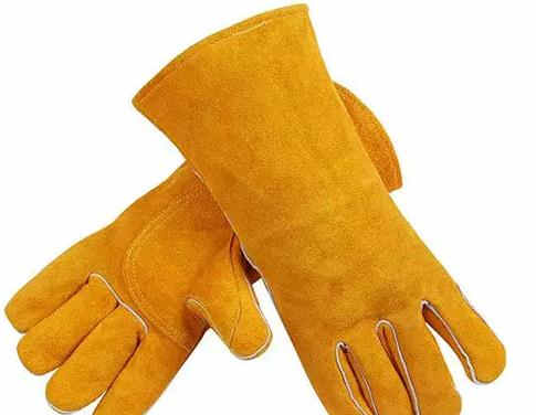 為防御焊接時(shí)的高溫、熔融金屬、火花燒灼手的個(gè)人防護(hù)用具。采用牛、豬狨革或二層革制成,按指型不同分為二指型、三指型和五指型。焊工手套有嚴(yán)格外觀要求。一級(jí)品要求革身厚薄均勻,豐滿柔軟而有彈性,革面絨毛細(xì)致、均勻、堅(jiān)牢、顏色深淺一致,無(wú)油膩感。二級(jí)品:革身缺乏豐滿彈性、革面絨毛粗、顏色略有深淺。