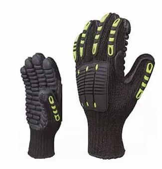 用于接觸振動(dòng)、如在林業(yè)、采礦、建筑、交通等部門(mén)用手持振動(dòng)工具(如油鋸、鑿巖機(jī)等)時(shí)預(yù)防因振動(dòng)引起振動(dòng)性職業(yè)病“白指癥”的個(gè)人防護(hù)用品。防振手套在結(jié)構(gòu)上,主要是在手掌面添加一定厚度的泡沫塑料、乳膠以及空氣夾層等來(lái)吸收振動(dòng)。襯墊厚度越厚,其含空氣量越多,減振效果愈好。但掌、指面太厚時(shí)又容易影響操作。