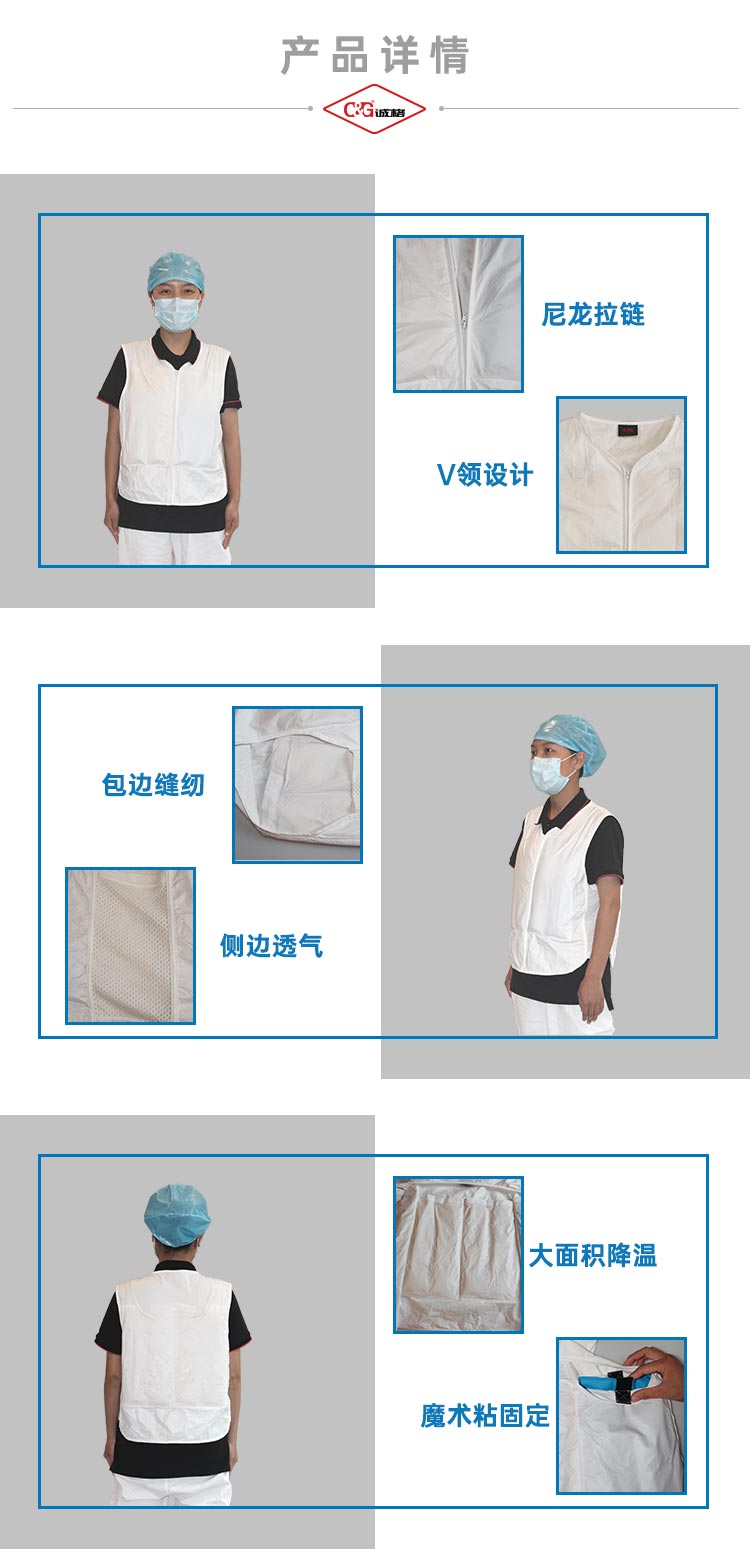 誠格?降溫背心系列產(chǎn)品廣泛應用于電子,制藥,實驗室,醫(yī)護等工作人員穿在防護服內(nèi)使用。同時也適用于電力、消防、軍警、戶外科研等面臨高溫環(huán)境人員使用。