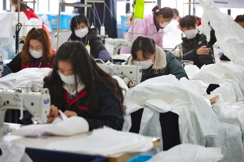 上海誠格安全防護用品有限公司防護服生產(chǎn)車間經(jīng)過了幾天的設(shè)備調(diào)整,50多個車位,70多名工人正在加班加點趕制醫(yī)用防護服。