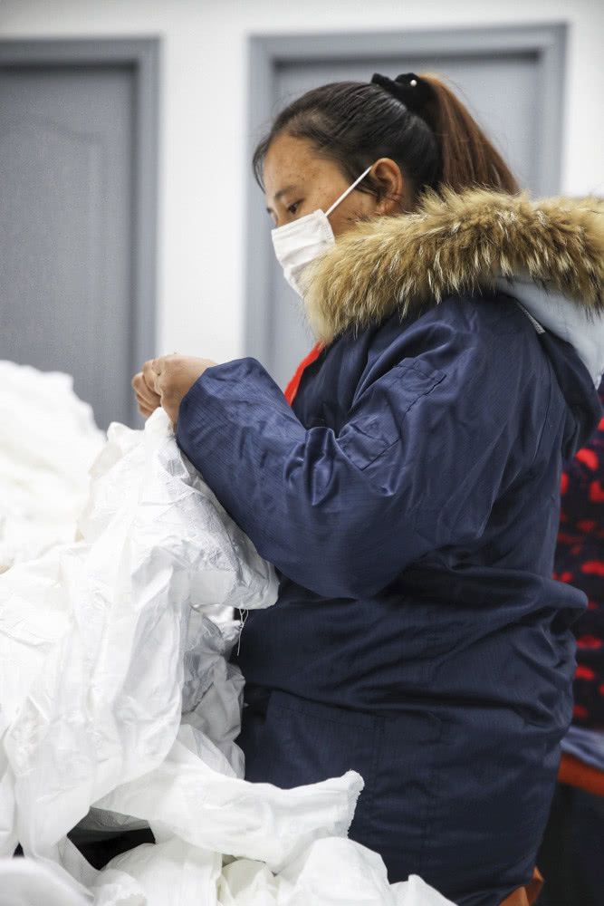 原本上海沒有專門生產(chǎn)醫(yī)用防護服的企業(yè),疫情發(fā)生后,公司與政府各個部門通力合作,僅用5天時間就完成了廠房、設(shè)備、原料、食宿、安全以及貿(mào)易運輸和生產(chǎn)線改造等各種問題。目前,誠格公司這兩天的產(chǎn)能在1600件左右,最近都在調(diào)整,短期產(chǎn)能目標(biāo)為每天生產(chǎn)9000件,目前工廠生產(chǎn)兩款防護服,主要供給外圍人員使用,還有醫(yī)護人員使用的也將馬上投產(chǎn)。