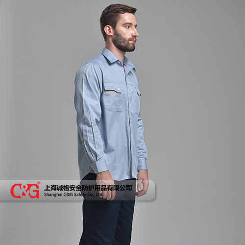 全棉或T/C面料舒適耐磨 胸口雙口袋撞色設(shè)計(jì)實(shí)用且不失時(shí)尚 背部修身設(shè)計(jì),袖口收緊方便安全 款式休閑白搭,整體展現(xiàn)職場(chǎng)時(shí)尚與穿著舒適及安全性融為一起。